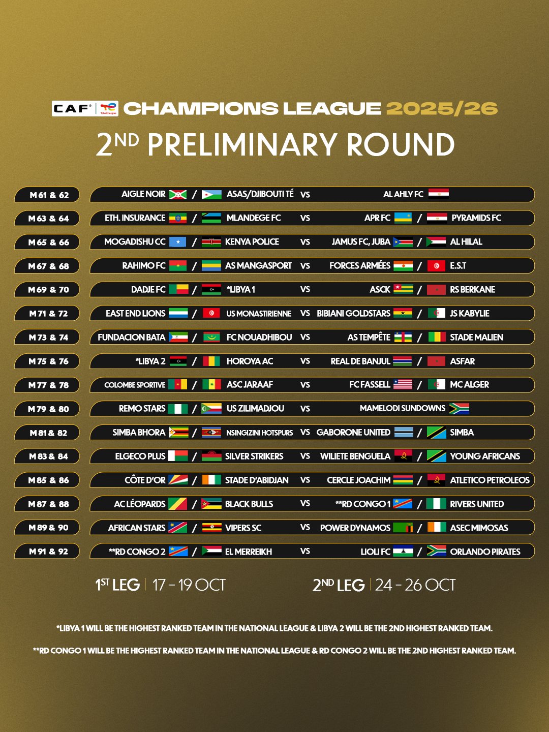 L’Espérance Sportive de Tunis, engagée cette saison dès le premier tour préliminaire, héritera de l’AS Forces Armées du Niger. Les Sang et Or se déplaceront à Niamey pour le match aller, programmé les 19, 20 ou 21 septembre 2025, avant de recevoir leurs adversaires au stade de Radès les 26, 27 ou 28 septembre.