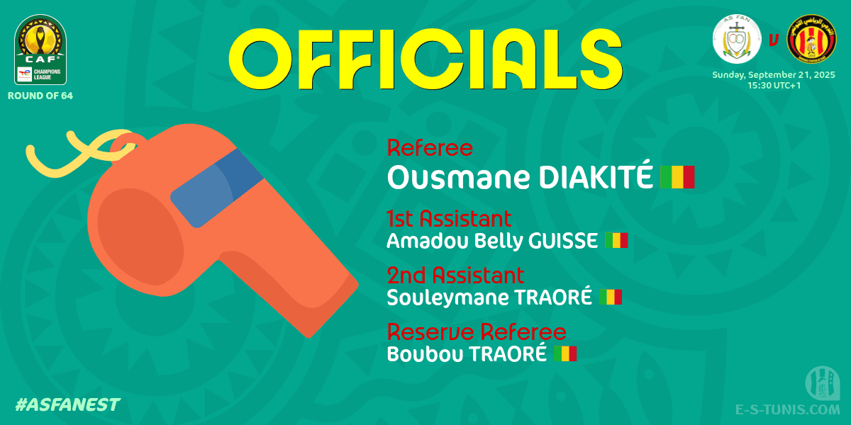 La confédération africaine de football (CAF) a désigné l'arbitre international malien Ousmane Diakité pour officier le match aller du premier tour préliminaire de la CAF Champions League 2025/2026 face à AS Forces Armées du Niger.